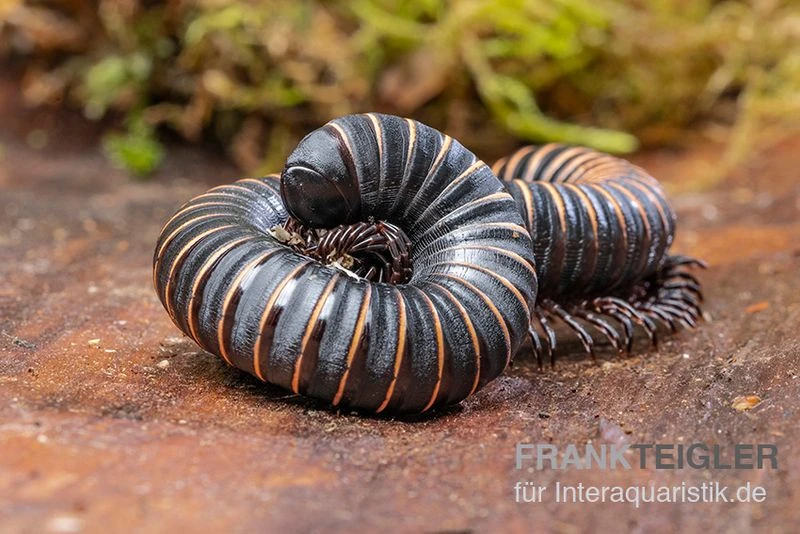 Pink gestreifte Tausendfüßer sind einfach zu füttern. Die Exoten nehmen Holz, Laubstreu, Obst, Gemüse und Pilze an.