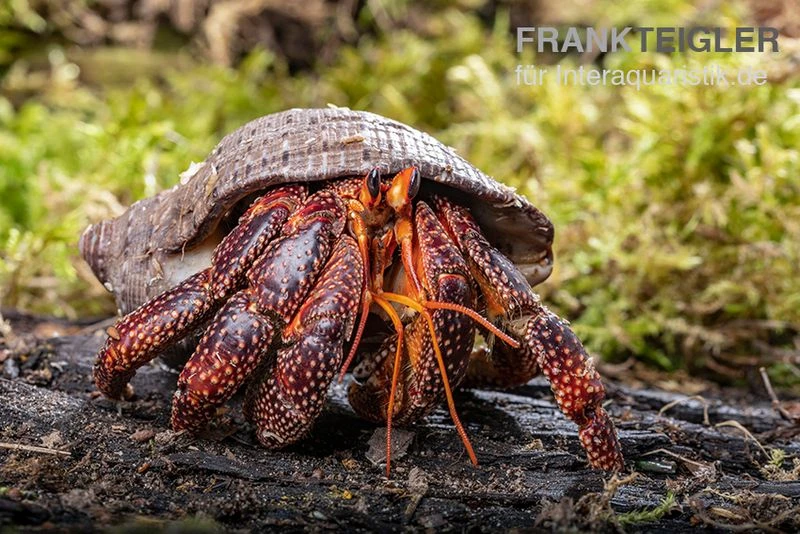 Wir erhalten diese Einsiedlerkrebse in kleiner Stückzahl gelegentlich aus Indonesien. Die Krebse sind sehr gesellig und friedlich, sie können problemlos in einer Gruppe gepflegt werden. Die schwarzroten Krebse sind überwiegend dämmerungs- und nachtaktiv. Wenn sich die Einsiedlerkrebse wohl fühlen, die Luftfeuchtigkeit und die Temperatur passt, dann sind sie sehr aktiv im Terrarium unterwegs.